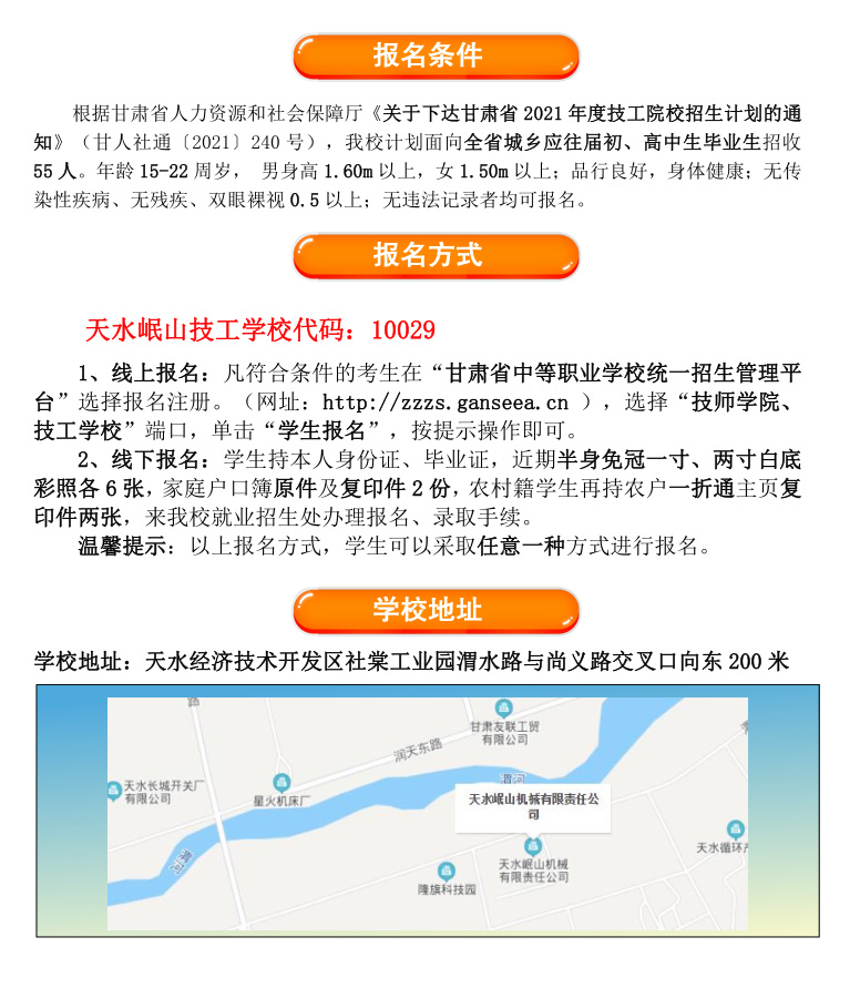 : 天水岷山技工學(xué)校2021年招生簡章